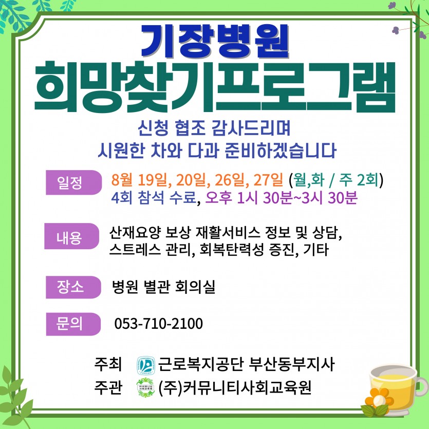 2024년 기장병원 산재근로자를 위한 희망찾기프로그램을 진행합니다.