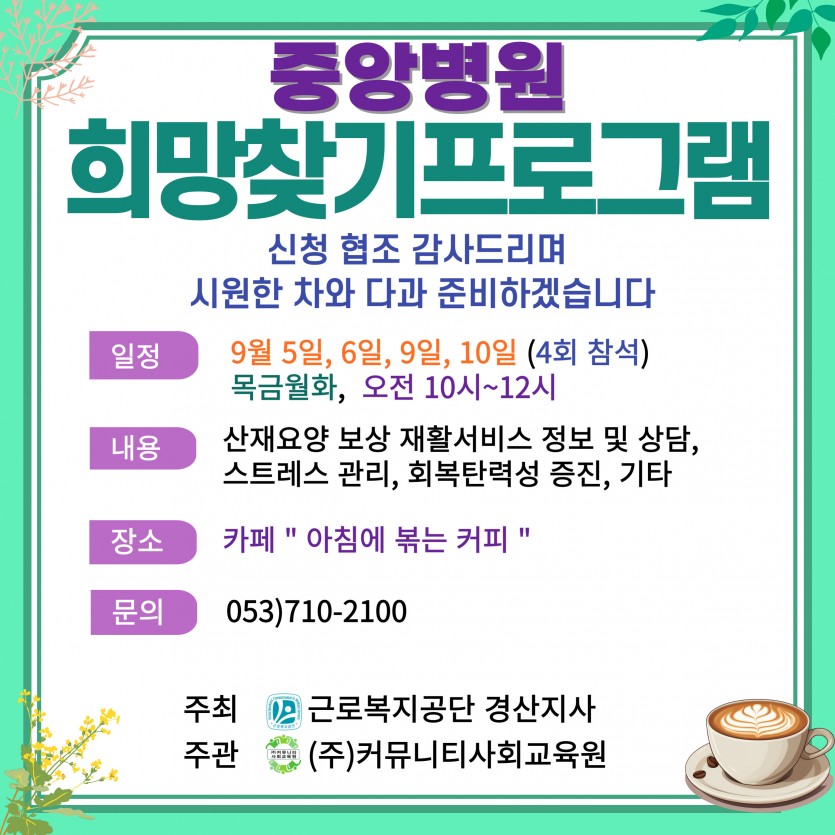 2024년 경산중앙병원(2반) 산재근로자를 위한 희망찾기프로그램 안내