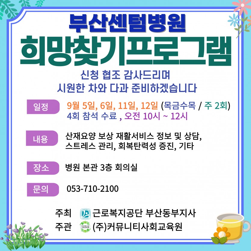 2024년 부산센텀병원 산재근로자를 위한 희망찾기프로그램 안내
