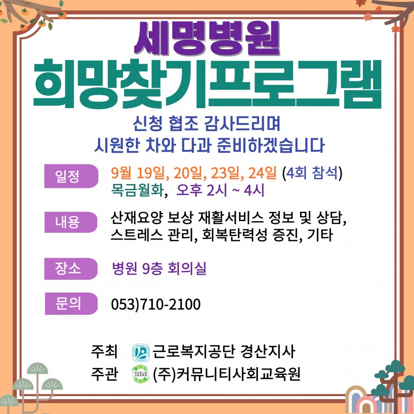 2024년 경산세명병원(6반) 산재근로자를 위한 희망찾기프로그램 안내