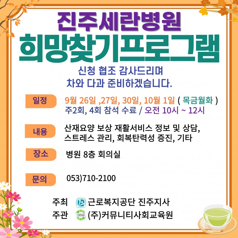 2024년 진주세란병원 산재근로자를 위한 희망찾기프로그램을 진행합니다.