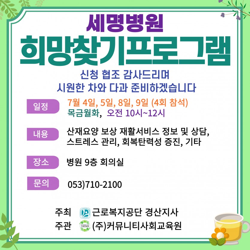 2024년 경산 세명병원(3반) 산재근로자를 위한 희망찾기프로그램 안내