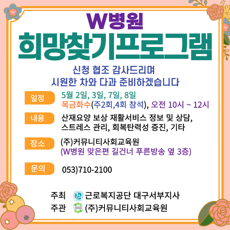 2024년 W병원 산재근로자를 위한 희망찾기프로그램을 진행합니다.