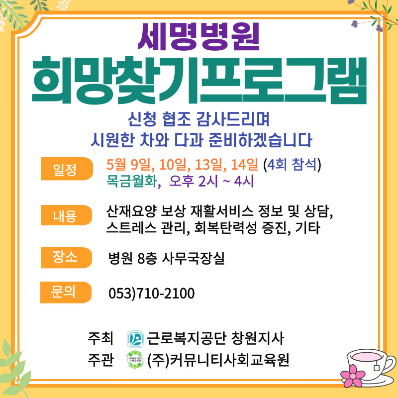 2024년 W병원 산재근로자를 위한 희망찾기프로그램을 진행합니다.