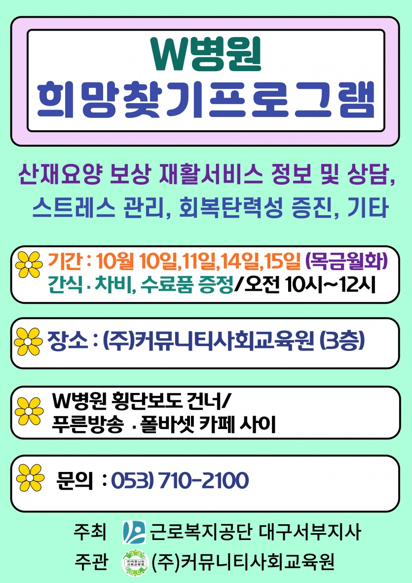 2024년 W병원(7반) 산재근로자를 위한 희망찾기프로그램 안내
