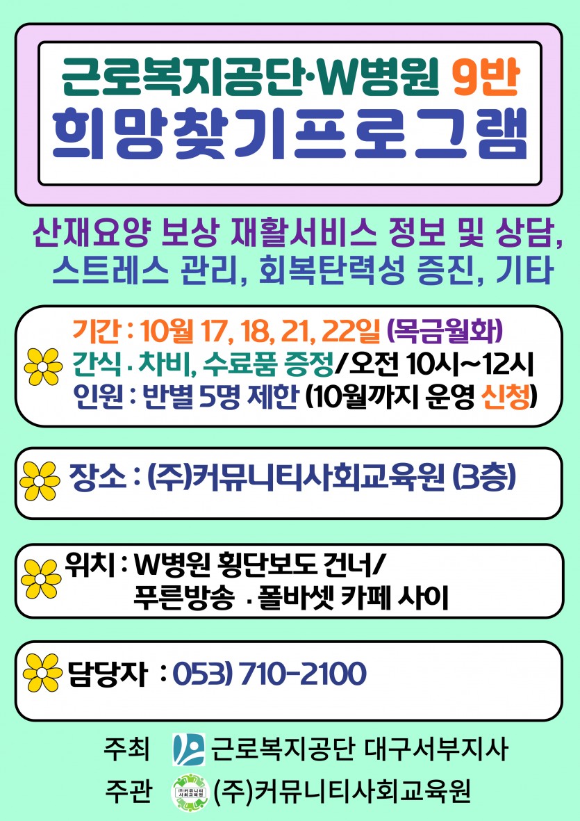 2024년 W병원(9반) 산재근로자를 위한 희망찾기프로그램을 진행합니다.