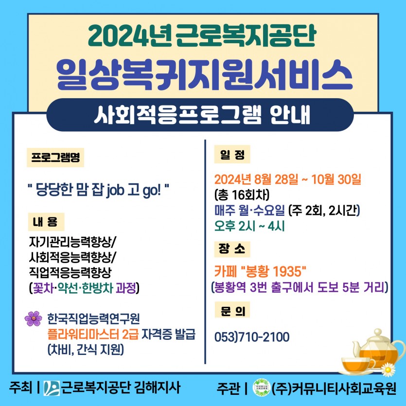 2024년 근로복지공단 김해지사 일상복귀지원서비스 사회적응프로그램을 안내해드립니다.