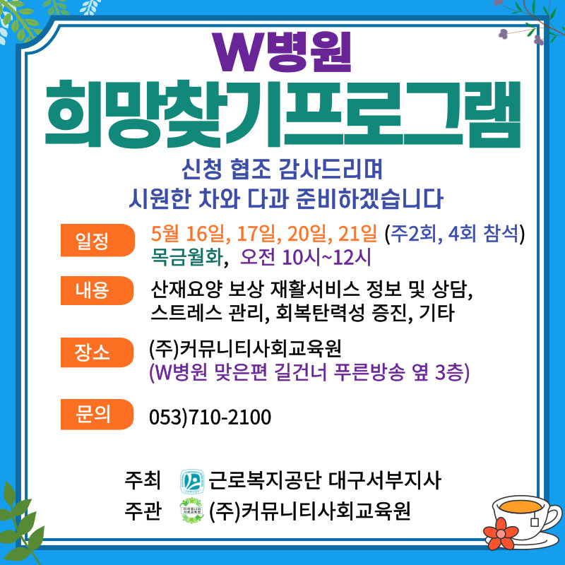 2024년 W병원(2반) 산재근로자를 위한 희망찾기프로그램 안내